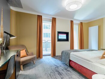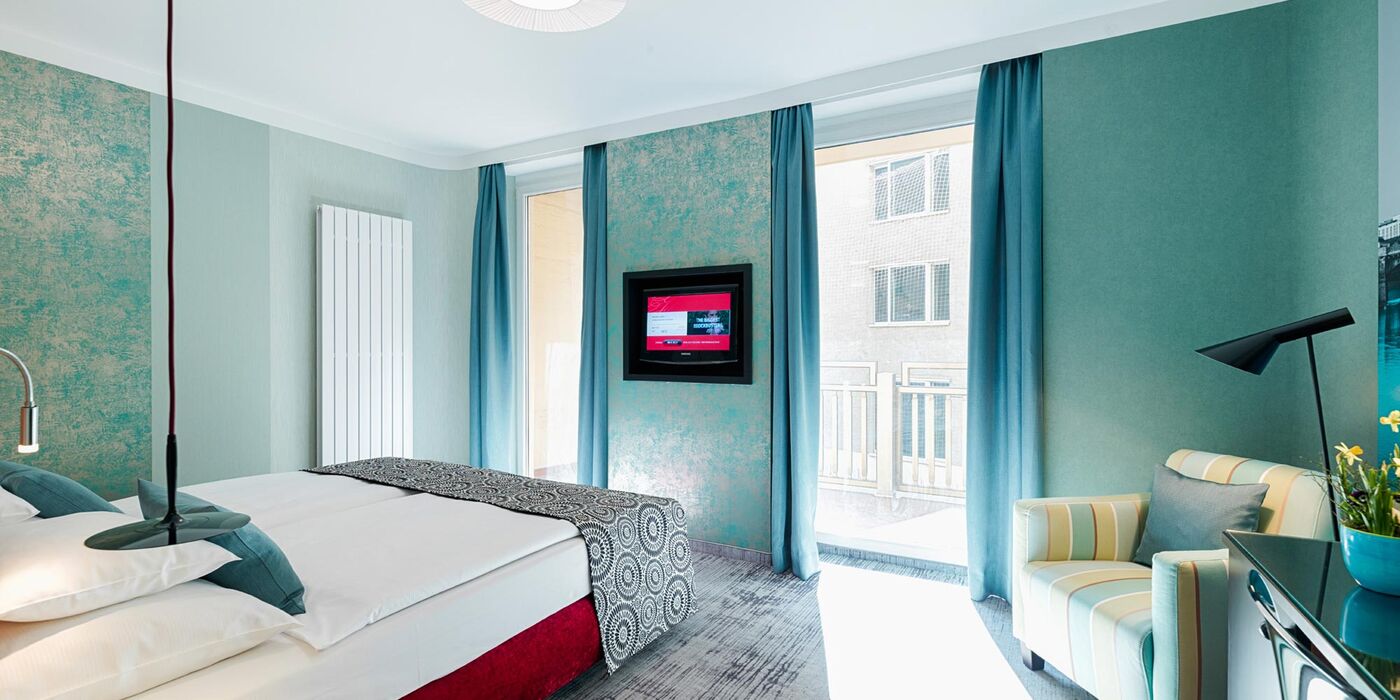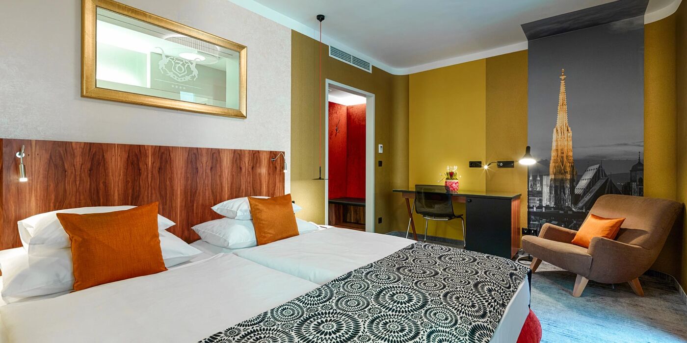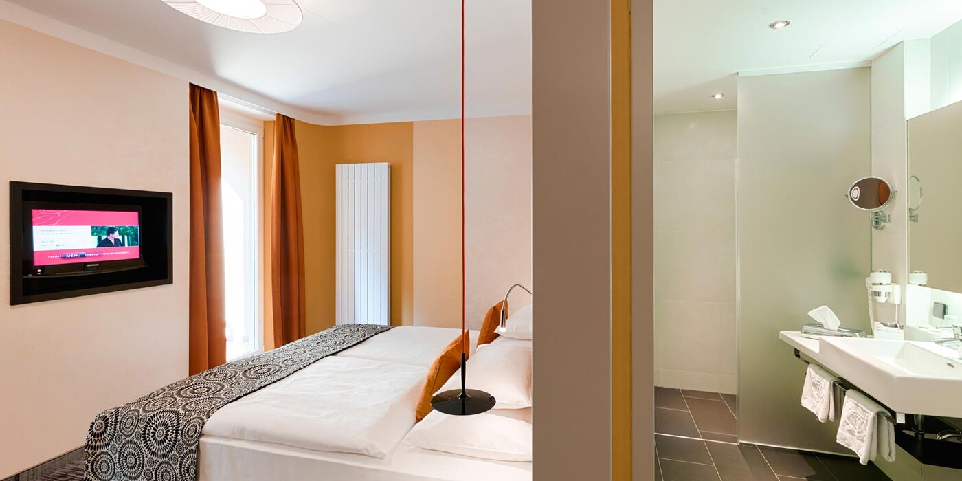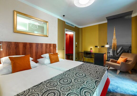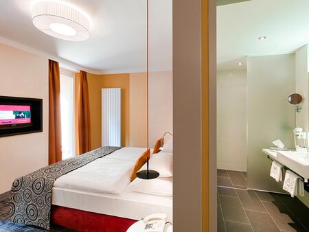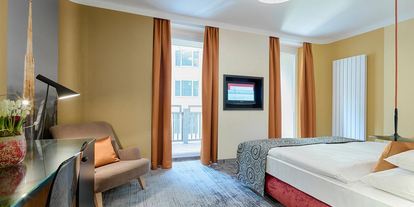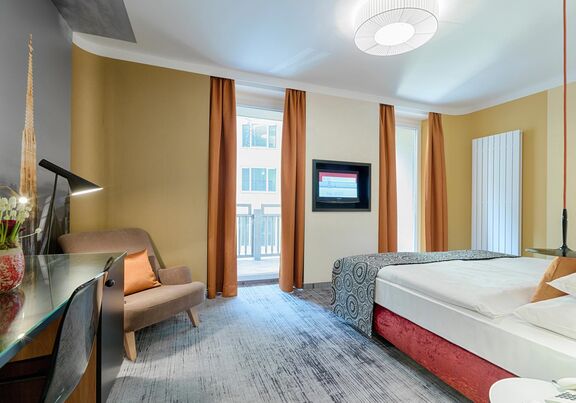 Our stylish, air conditioned non-smoking rooms come with a double bed and are available for up to 2 people.